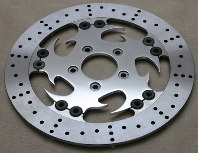 Tribal style floating disc to match tribal style wheel, with billet centre and spondon stainless rotor. Available in 11.5", 320mm and 13".