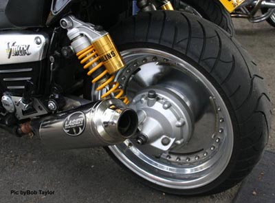 V-Max replacement rear wheel,6.5x17, 190 tyre (recommend notching swingarm).Upgrade to modern radial tyres for better handling, braking and mileage.